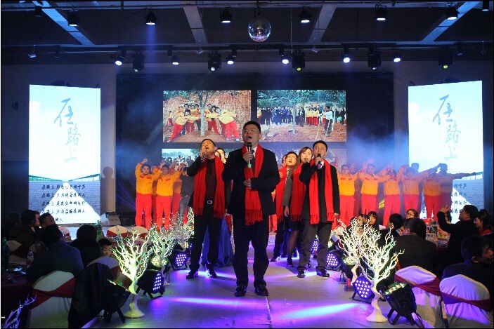 一場(chǎng)氣勢(shì)磅礴的面具舞,帶大家進(jìn)入了演出環(huán)節(jié)。所有節(jié)目都是和順員工精心準(zhǔn)備的,節(jié)目形式多樣,有小品、歌曲聯(lián)唱、舞蹈、樂器等等,大家個(gè)個(gè)身懷絕技,臺(tái)下掌聲也是連綿不絕。一首《在路上》帶大家進(jìn)入了此次嘉年華的高潮,伴隨著在路上的朗誦,董事長攜伴隨公司一路走來的老員工一同上臺(tái),共同唱響和順一路走來的艱辛與收獲。節(jié)目中還有公司給大家?guī)淼念~外福利,QQ搶紅包,真是驚喜不斷!